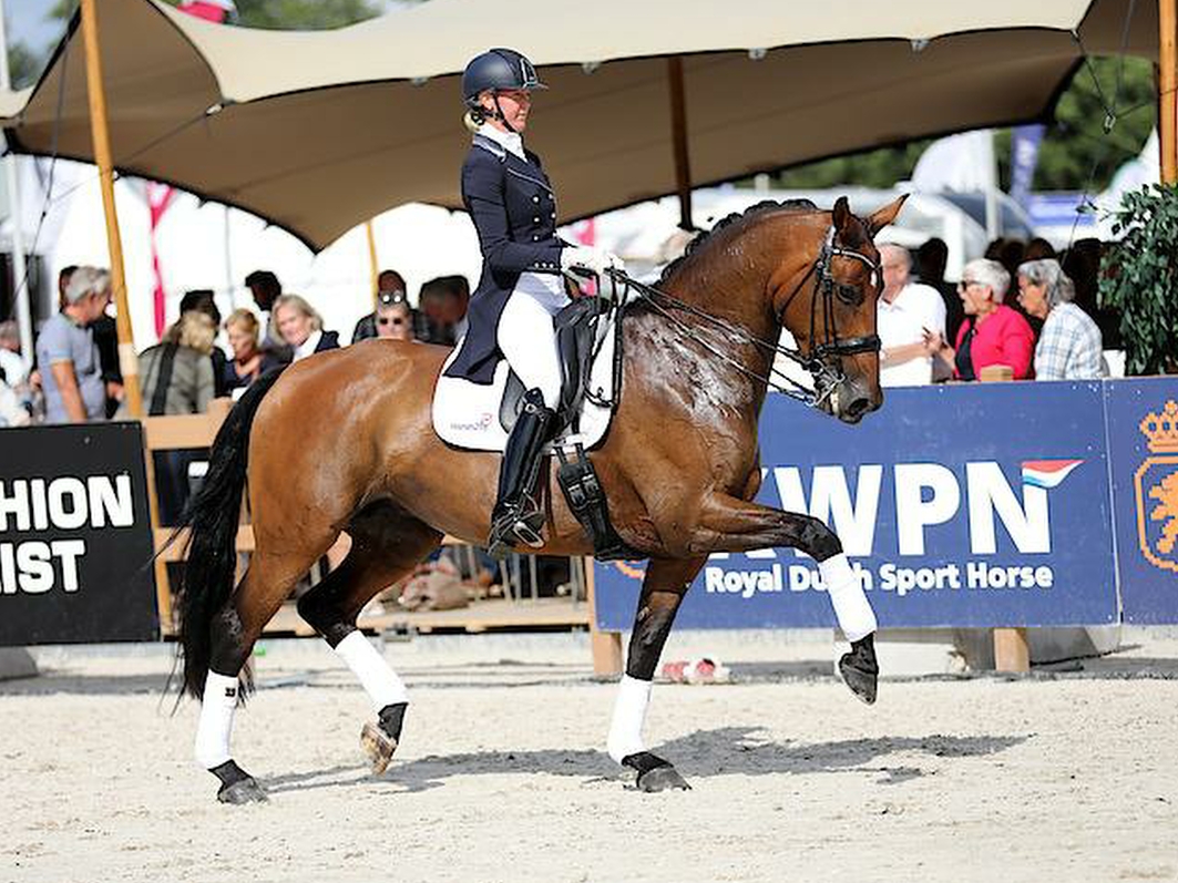 De meeste paarden die ik train zijn van onszelf. Daarnaast heb ik een fijne samenwerking met een aantal dressuurpaarden fokkers.